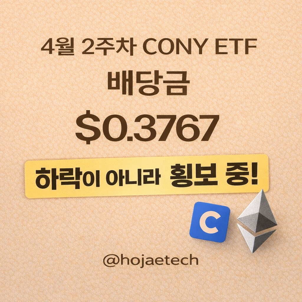 4์ 2์ฃผ์ฐจ CONY ETF (YieldMax® COIN Option Income Strategy ETF) ๋ฐฐ๋น๊ธ์ด ํ์ ๋์์ต๋๋ค.์ด๋ฒ ์ฃผ ์ฃผ๋น ๋ฐฐ๋น๊ธ์ $0.3767,ํ์จ์ 1๋ฌ๋ฌ = 1,580์ ๊ธฐ์ค์ผ๋ก ๊ณ์ฐํ์ต๋๋ค.์ต๊ทผ ์์ฅ์ ๋ณด๋ฉด “์ ๋ฐฐ๋น์ด ํฌ๊ฒ ๋์ง ์์๊น?”๋ผ๋ ์๊ฐ์ด ๋ค ์ ์์ต๋๋ค.ํ์ง๋ง ์ด๋ฒ ๊ตฌ๊ฐ์ ๋จ์ํ ์ฝ์ธ์ฅ์ด ์๋๋ผ,๐ ๋ฐฉํฅ์ ์ ํ๊ธฐ ์ ‘์ฃผ์์ ์ถ์ ๊ตฌ๊ฐ’์ผ๋ก ๋ณด๋ ๊ฒ์ด ๋ ์ ํํฉ๋๋ค.๐ฐ ๋ฐฐ๋น๊ธ ๊ณ์ฐโ ์ฃผ๋น ๋ฐฐ๋น๊ธ0.3767×1,580=595.190.3767 \times 1,580 = 595.190.3767×1,580=595.19๐ ์ฃผ๋น ์ฝ 595์ ์์คโ 47์ฃผ ๊ธฐ์ค ์ด ๋ฐฐ๋น๊ธ0.3767×47=17.70490.3767 \times 47 = 17.70490.3767×47=1..